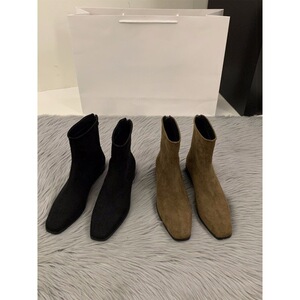 粗跟绒面韩系小踝靴女鞋2025新款秋冬季加绒马丁靴咖色瘦瘦短靴子