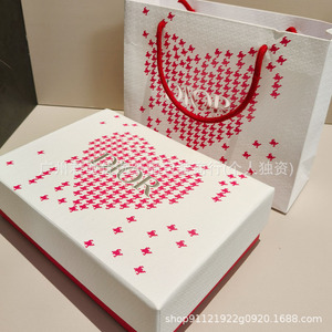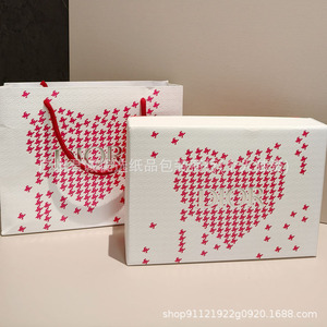 D家七夕新款爱心千鸟格香水礼盒礼袋口红护手霜洗面奶包装盒纸袋