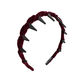 复古丝绒纽结发箍-酒红