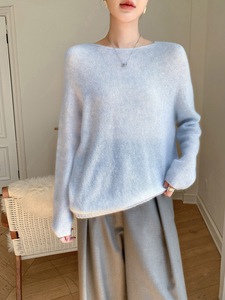 宽松廓形~蚕丝羊绒衫女秋冬新款山羊绒+桑蚕丝无缝一线丝羊绒毛衣