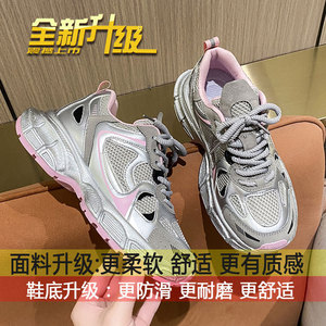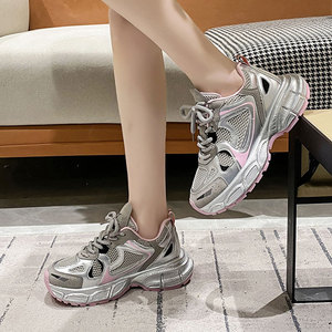 小香风休闲运动鞋爆款增高跑步鞋子女2025新款春秋百搭银色老爹鞋