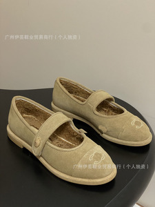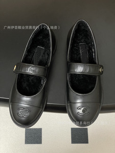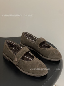 广州顶版2025新款小香风反绒圆头平底单鞋羊毛时尚保暖玛丽珍鞋女