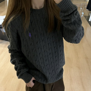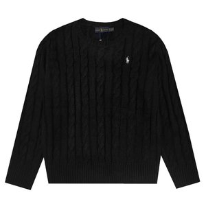 RL拉夫劳伦战马小马刺绣麻花毛衣圆领套头针织衫休闲百搭老钱风女