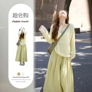 温柔穿搭一整套2025秋季新款慵懒宽松针织衫上衣搭配半身裙两件套