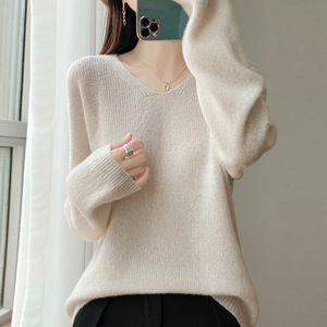 小众V领天丝百搭打底设计感套头羊毛内搭式针织衫女长袖圆领纯色