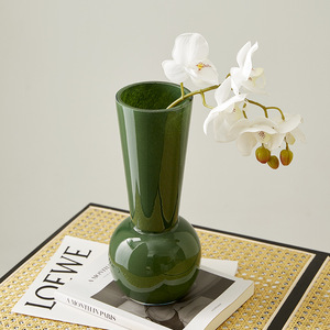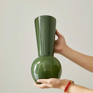 高级简约北欧中古复古玻璃红花瓶花器插花设计师家居桌面装饰摆件