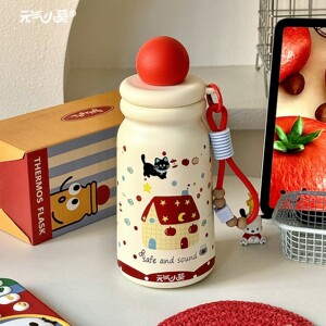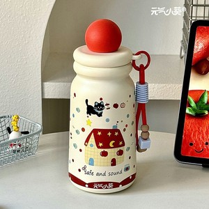 红灯泡塔型保温杯【500ML】-黑猫小屋+提绳