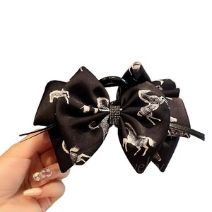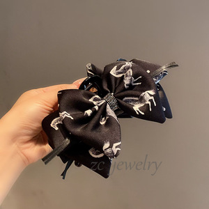 韩版发饰时尚布艺小马印花蝴蝶结抓夹女高级感时尚气质后脑勺发卡