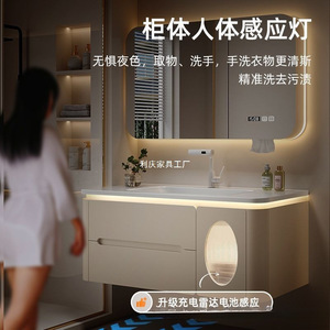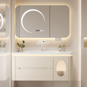 圆弧美妆镜柜+圆角陶瓷盆80cm