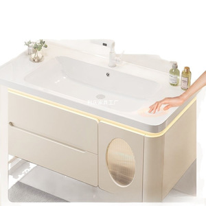 橡木浴室柜新款陶瓷一体盆洗脸盆洗手台洗漱台浴室柜组合厂家批发