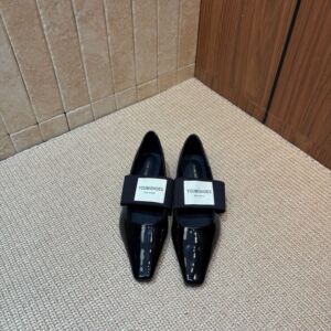 2025新款方头一字带粗跟浅口百搭通勤工作OL漆皮女单鞋