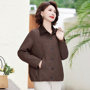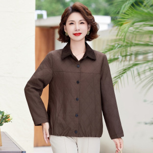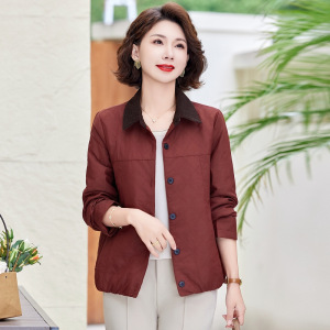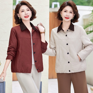 小个子妈妈秋装外套短款风衣中老年女装春秋款翻领夹克休闲上衣服