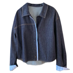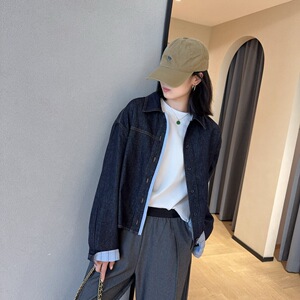 泽黛佳伊高品质拼接格纹小个子短款天丝翻领牛仔衬衫外套女2025秋