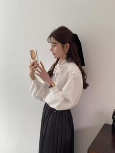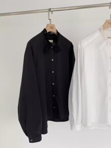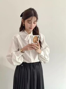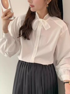 现h EGG韩国东大门2025秋季新款复古蕾丝蝴蝶结系带设计感衬衫女