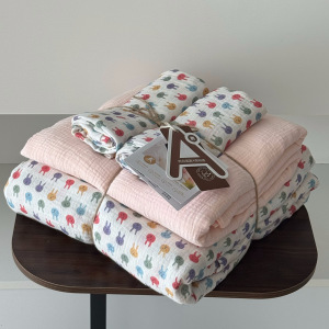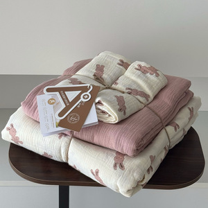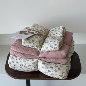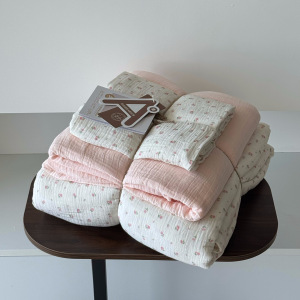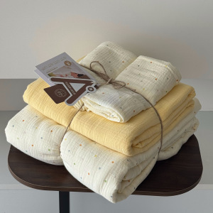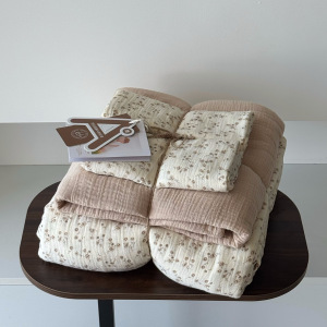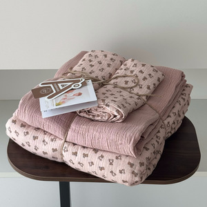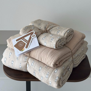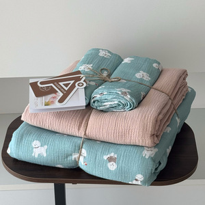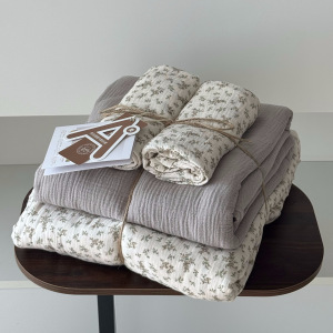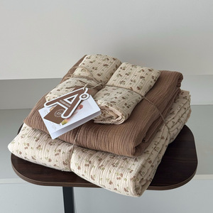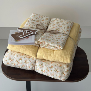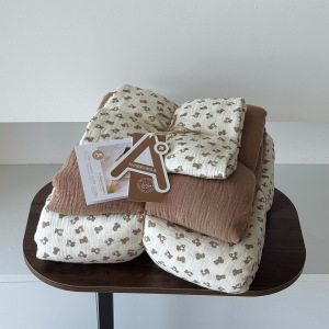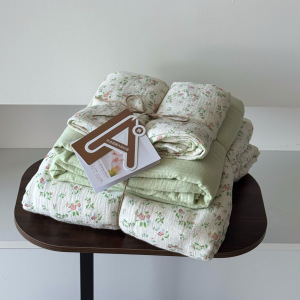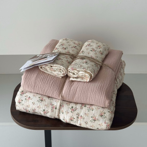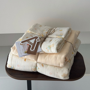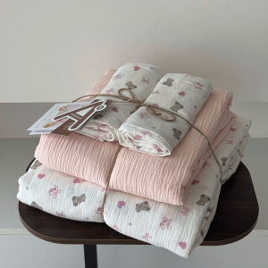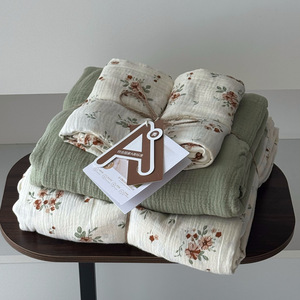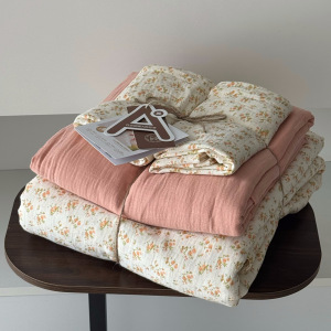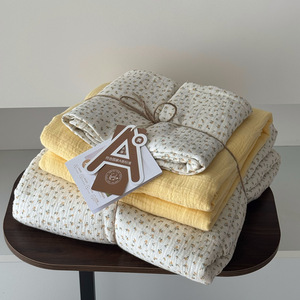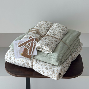 2025新款A类全棉印花被套四件套皱皱纱超柔软可裸睡居家套件批发