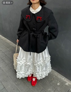 perpea缎面层层木耳边蛋糕中长大摆半裙花苞伞裙