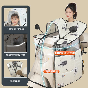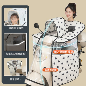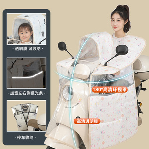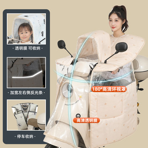全包斗篷式挡风被电动车春秋四季冬季双面防水保暖大电摩亲子款
