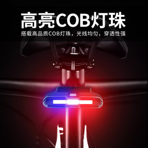 跨境太阳能自行车尾灯Type-C充电红蓝白三色变光COB高亮警示刹车