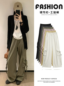 美式伞兵工装裤女春秋设计感高腰垂感显瘦休闲拖地两穿运动长裤子