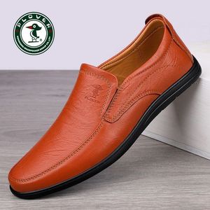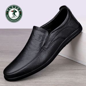 PLOVER2024正品春季男士休闲皮鞋男真皮软底百搭一脚蹬豆豆鞋驾车