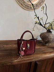 复古磨砂麂皮菜篮子包女士手提托特包感小众韩系潮流上班通勤包