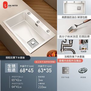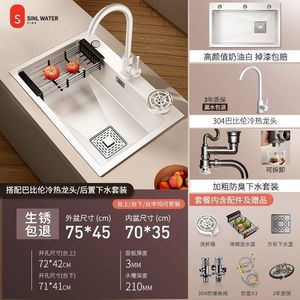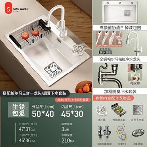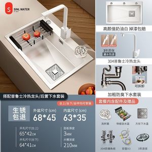 心力奶油风厨房水槽大单槽不锈钢洗菜洗碗池盆手工台下盆大号加厚