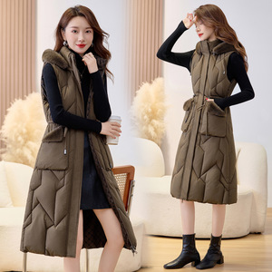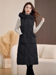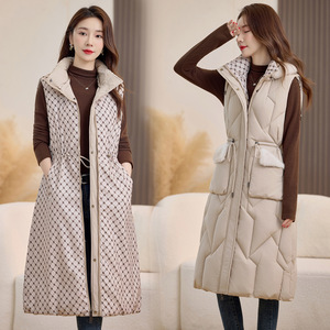 防水貂毛修身棉马甲女2025秋冬新花纹撞色两面穿连帽中长款棉马夹