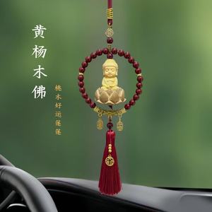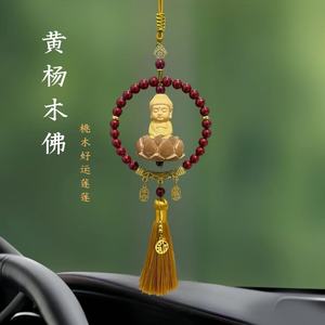 中国风圆满紫金砂黄杨木小佛桃木莲花汽车挂件高级感男女车内吊饰