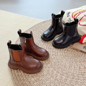 ins英伦风马丁靴2025春秋季新款韩版女童复古烟筒靴男童厚底短靴