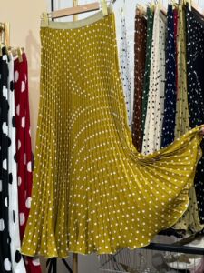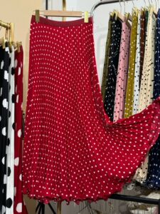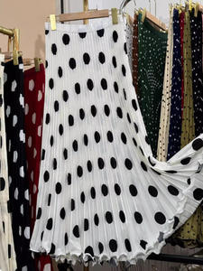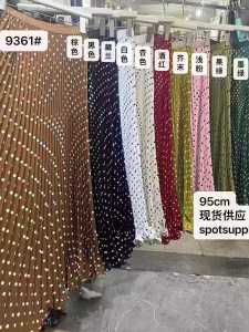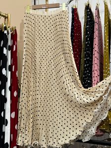 多色夏季新款百褶波点半身裙2.2米超大摆时尚雪纺鱼尾长裙95cm