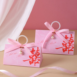 双喜-可爱粉+粉色丝带+珍珠环+喜字