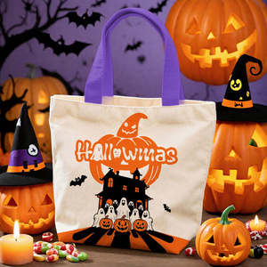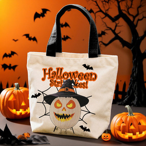 跨境新款万圣节糖果礼品帆布袋创意卡通手提袋学生节日派对小拎包