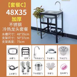 厨房家用加厚不锈钢水槽简易支架洗手盆水池洗菜洗碗池架子单槽