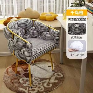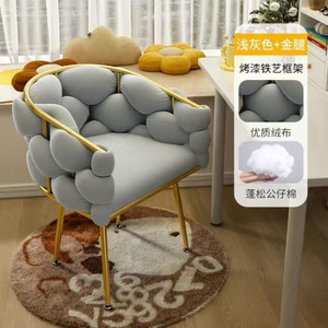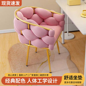化妆椅子家用女生卧室梳妆台凳子奶油风花瓣椅轻奢美甲靠背化妆凳