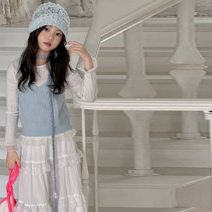 女童2025秋上新毛衣马甲长袖T恤半身裙套装中大童春秋韩版打底衫