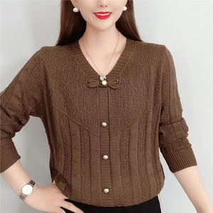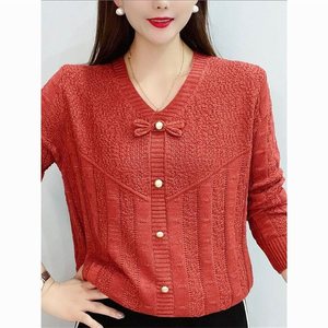 洋气百搭V领长袖针织衫女2025春秋新款时尚宽松显瘦中年妈妈上衣