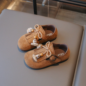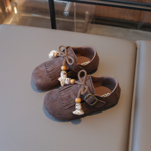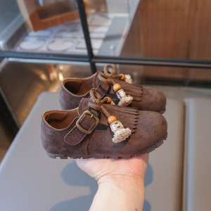 女童流苏勃肯鞋2025春秋季新款爆款儿童休闲百搭皮鞋新中式豆豆鞋