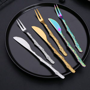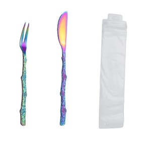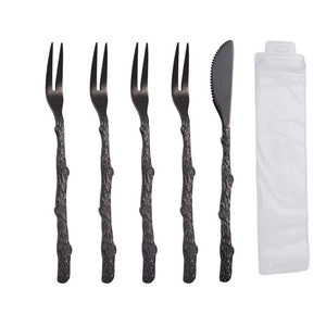 跨境不锈钢月饼刀叉创意树枝水果叉彩色蛋糕叉子甜品叉刀叉套装