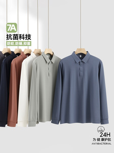 冰丝无痕长袖T恤男女7A抗菌休闲上衣秋季新款免烫抗皱翻领POLO衫