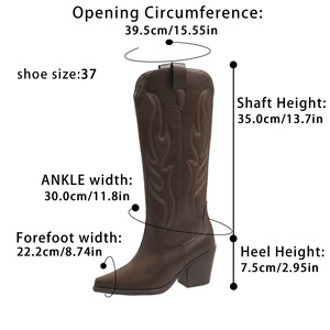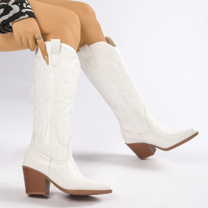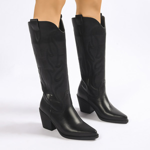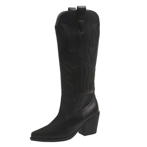 外贸女靴刺绣长筒靴2025女骑士靴粗跟高跟西部牛仔复古大筒围潮靴