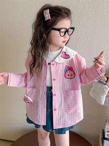 女童韩系拉布衬衫洋气宝宝外套秋装新上衣儿童春秋季衬衣长袖开衫