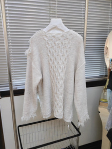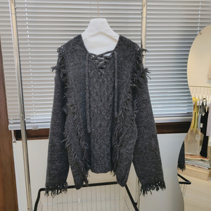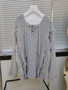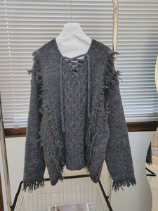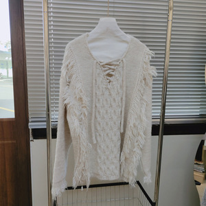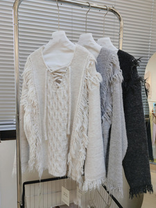 欧货美式设计感流苏麻花毛衣女秋冬宽松外穿慵懒系带v领针织上衣