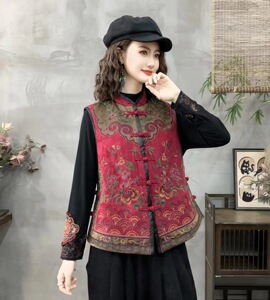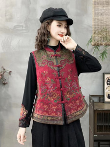重工刺绣2025秋款女式缎面民族风刺绣带女士马甲中式坎肩