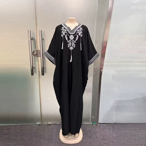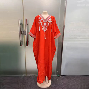 非洲2025沙滩罩衫人棉绣花度假连衣裙长袍跨境亚马逊外贸亚马逊