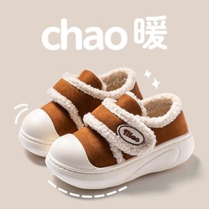 拖鞋女冬季魔术贴2025新款潮流加绒保暖厚底包跟大学生懒人鞋棉鞋