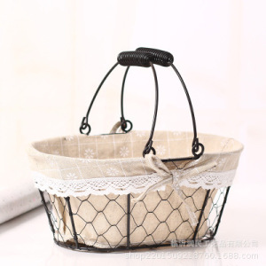 ins手提把铁艺收纳筐超市购物篮金属水果花篮面包野餐包装礼品篮
