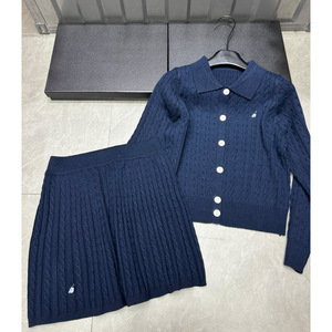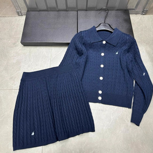 25年秋季新款POLO小马拉夫麻花针织翻领长袖开衫+半裙两件套套装