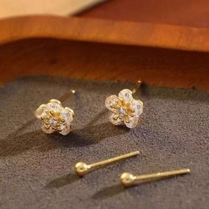 高级感气质锆石花朵耳钉四件套小巧精致新款高级感百搭耳环耳饰
