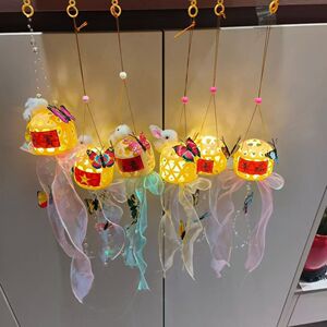中秋节手提小灯笼五角星塑料灯笼古风兔子花灯手提灯笼发光玩具