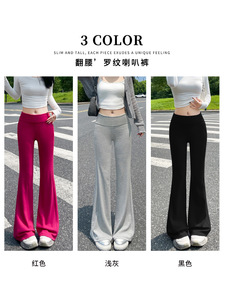 美式翻腰微喇运动瑜伽裤女春秋修身辣妹显瘦垂感休闲针织阔腿裤子